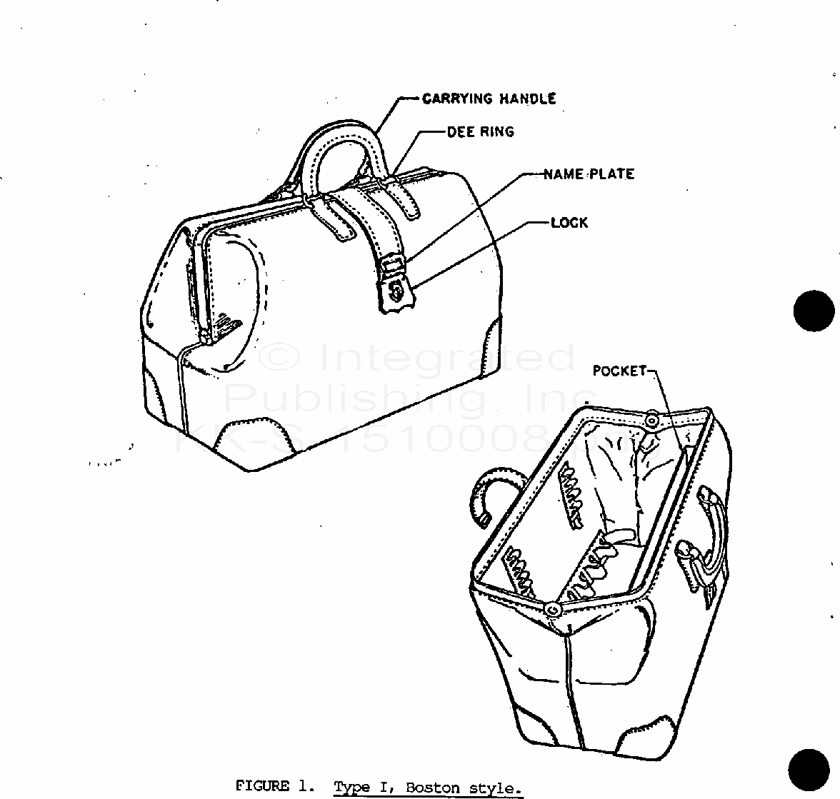 This specification covers physicians' leather satchels suitable for use by medical personnel on the ground and in flight.